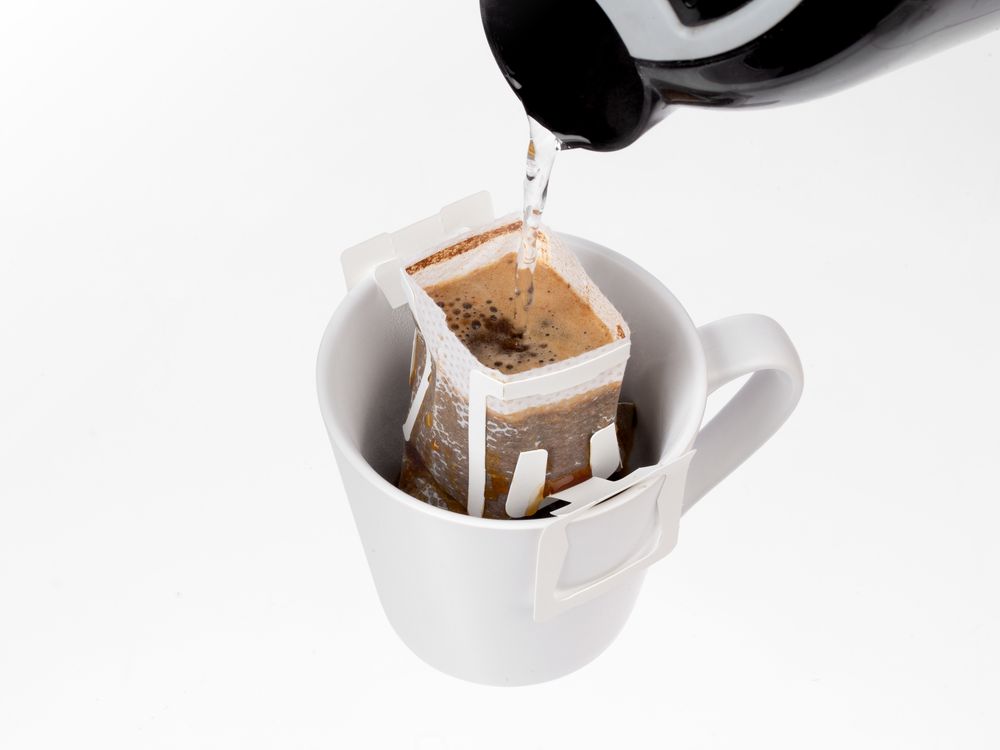 Дрип-пакет — легкий способ альтернативного заваривания натурального кофе прямо в чашке. Вам потребуются только любимая кружка и горячая вода: вскройте фильтр-пакет по линии отрыва, разместите его на чашке и медленно пролейте 150-200 мл воды через молотый кофе. Если хотите получить напиток покрепче — оставьте дрип в кружке на 2-3 минуты.